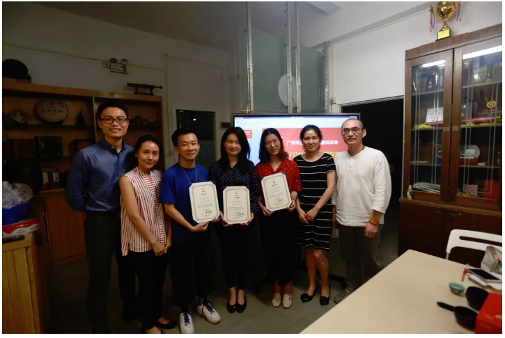 接着,刘会长将公益讲师聘书分别授予了四位志愿者老师:吴伟霞老师、杜碧嘉老师、林伟锐老师和文欣老师,并合影留念。