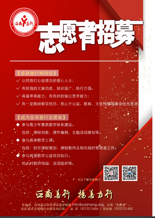 2019年6月19日晚上,来自不同业界的近二十位志愿者老师,我们有语言学博士、教育学硕士、税务规划师、教育培训师、建筑设计师……相聚一堂,共同见证了亚商善行青少年素质教育首期公益讲师的荣誉授聘!