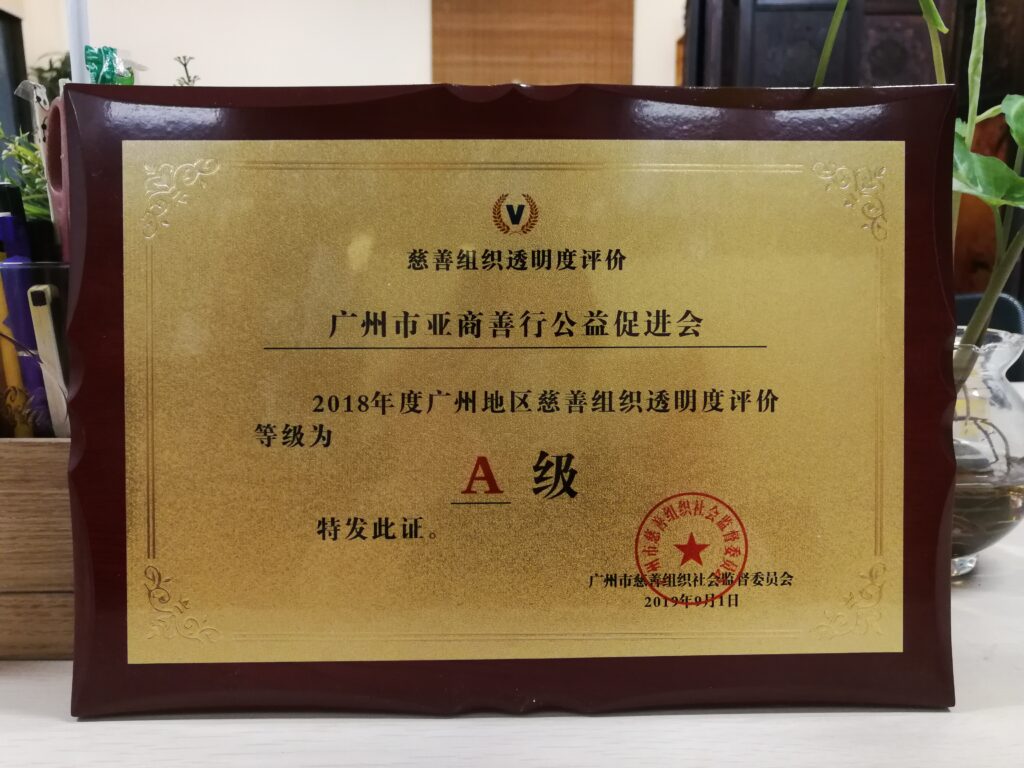 促进会荣获2018年广州地区度慈善组织透明度A级评价等级