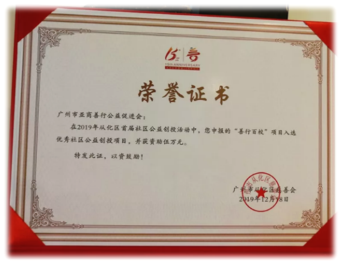入选2019年从化社区公益创投活动,被评为优秀社区公益创投项目。
